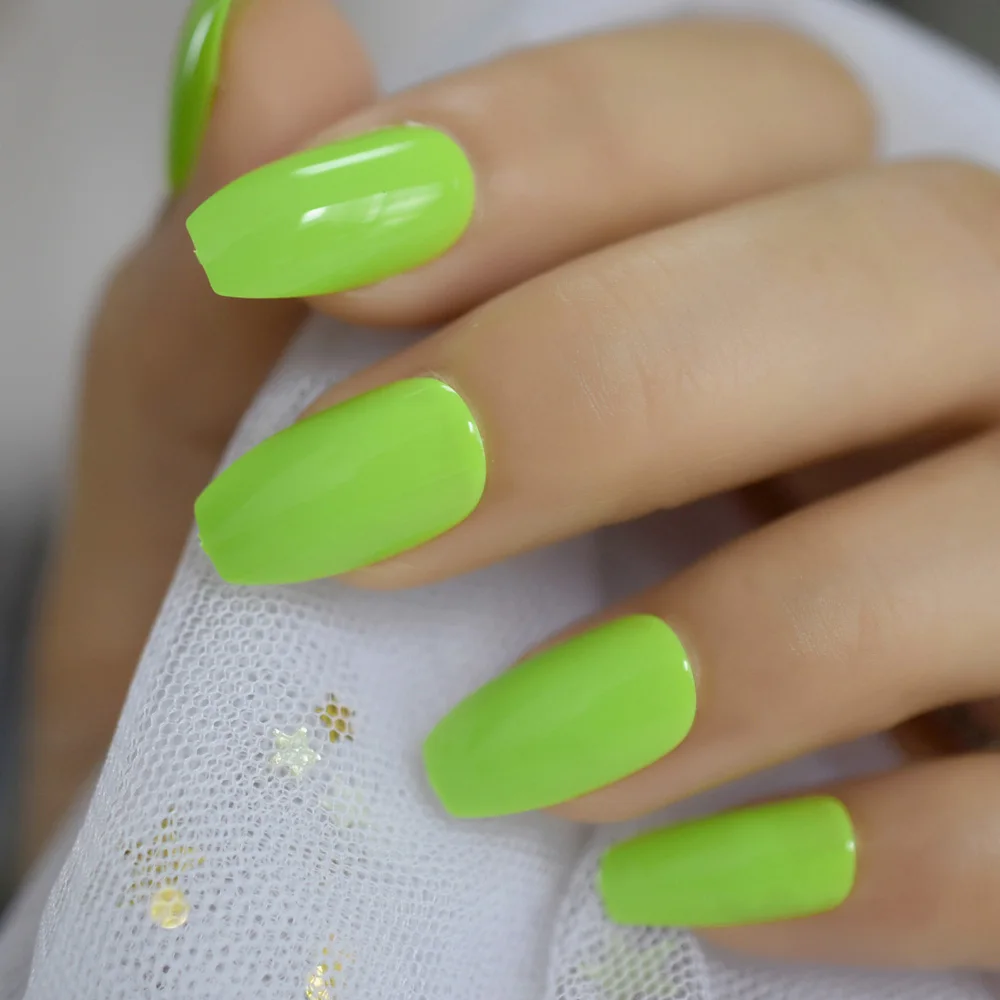 Unas Postizas Uv Para Mujer Unas Postizas De Color Verde Manzana Color Liso A La Moda Para Usar En Verano Unas Postizas Aliexpress